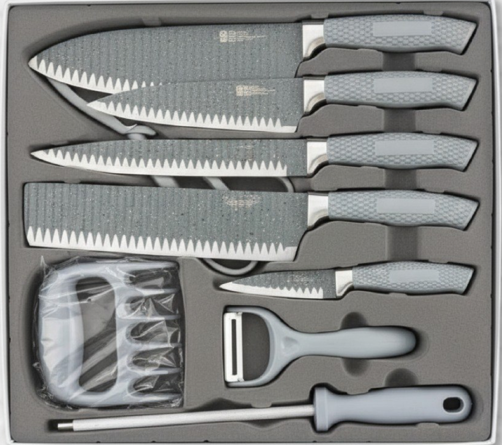Transforma tu experiencia culinaria con nuestro Juego de Cuchillos de 8 Piezas. Diseñado para la precisión, durabilidad y comodidad, este set incluye todas las herramientas que necesitas para cortar, picar, rebanar y filetear con facilidad. Cada cuchillo cuenta con una hoja de acero inoxidable de alta calidad y un mango ergonómico que garantiza un agarre seguro y un control perfecto.